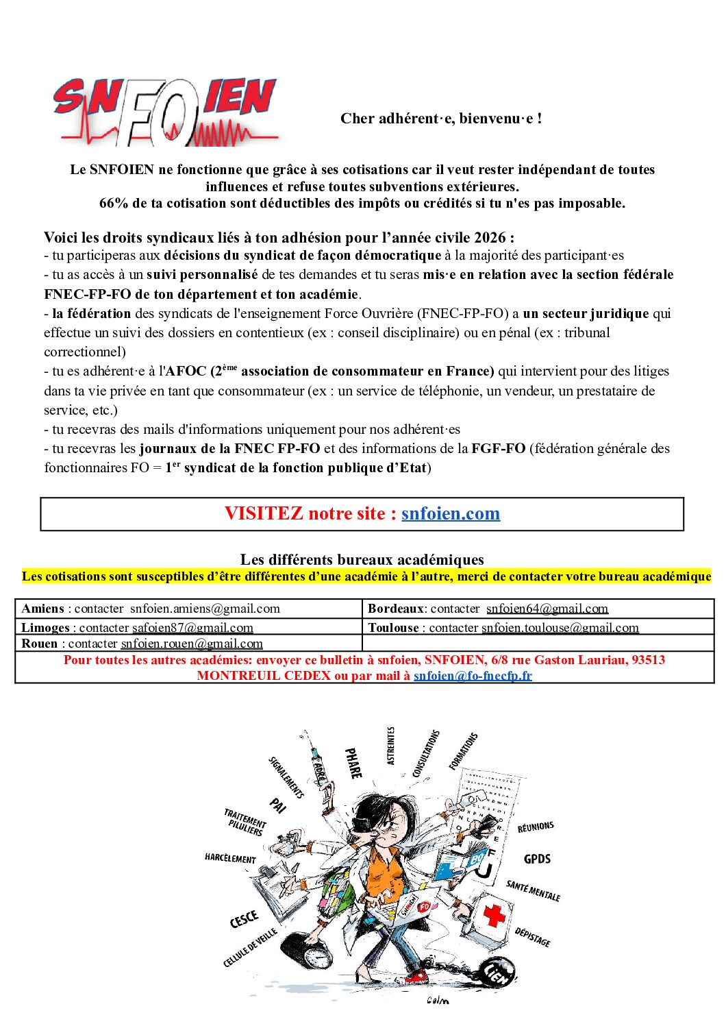 Académies Une année 2026 combative pour les INFENES en IDF. 5 janvier 2026 snfoien L’année 2026 débute après une année 2025 tumultueuse, riche en évènements et en combats . Le SNFOIEN vous la souhaite heureuse, porteuse de joie et de satisfaction dans vos projets. Nous restons à vos côtés […]