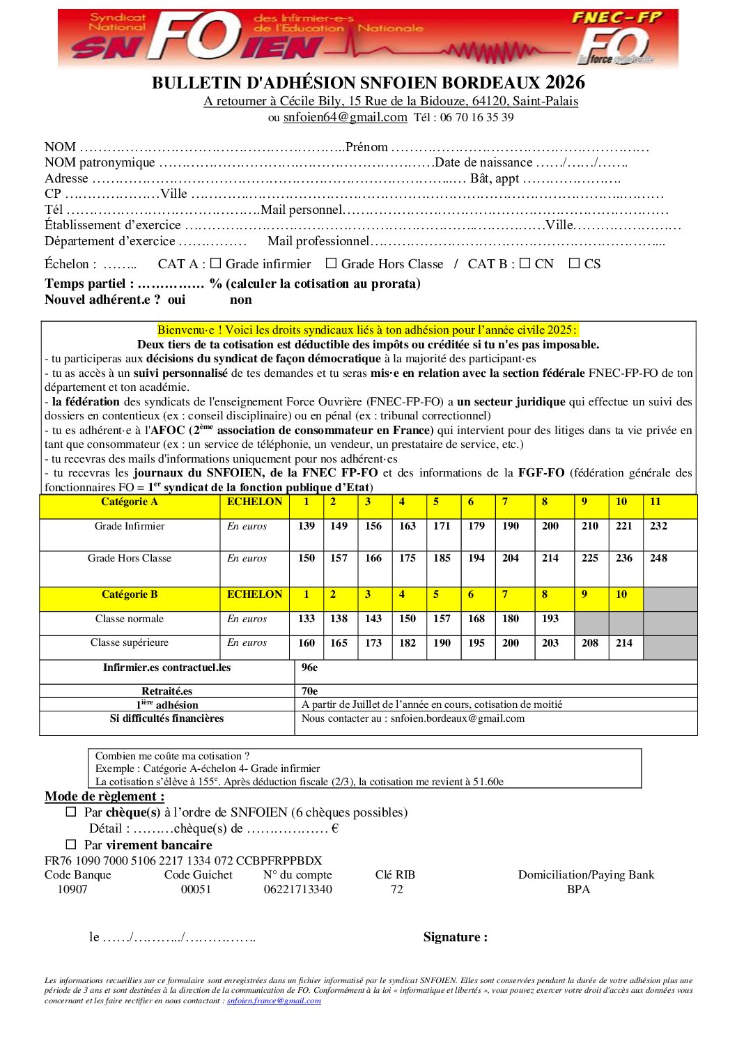 Votre référente à Bordeaux : Cécile Bily snfoien64@gmail.com